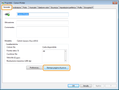 Fare clic su [Stampa pagina di prova] nella scheda [Generale].
