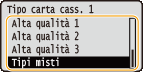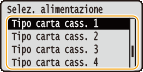 Selezionare una delle opzioni da <Tipo carta cass. 1> a <Tipo carta cass. 4>, quindi premere
