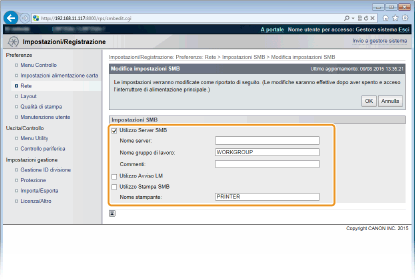 Selezionare la casella di controllo [Utilizzo Server SMB] e specificare le impostazioni richieste.