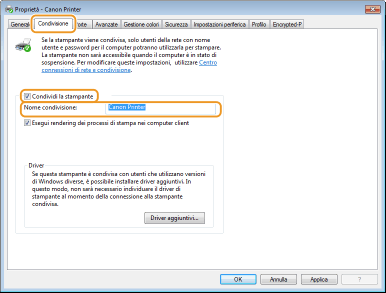 5 | Fare clic su [OK]. Viene avviata l'installazione dei driver aggiuntivi. Attendere che venga nuovamente visualizzata la scheda [Condivisione]. ![]() Quando viene visualizzato [Controllo dell'account utente] Fare clic su [Sì]. |