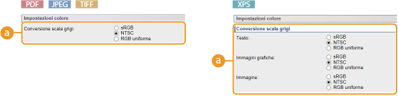 [Conversione scala grigi][sRGB] | I dati a colori vengono convertiti in dati in bianco e nero per ottenere una gradazione uniforme corrispondente a quella dei colori. |