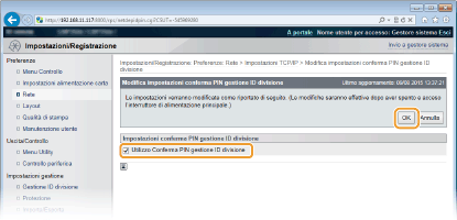 Selezionare la casella di controllo [Utilizzo Conferma PIN gestione ID divisione]