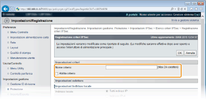 Quando si utilizza IPSec nella macchina, selezionare la casella di controllo. Quando non si utilizza, deselezionare la casella di controllo.
