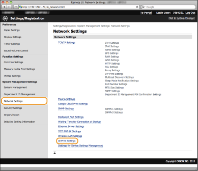Zum Ändern der AirPrint-Einstellungen melden Sie sich im Verwaltungsmodus an.