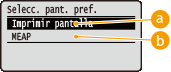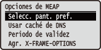 ![]() | Los elementos de configuración de la pantalla principal en MEAP se muestran con descripciones breves. Las opciones predeterminadas aparecen marcadas con una cruz ( ). |