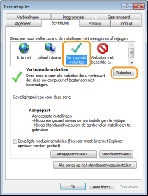 Selecteer [Vertrouwde websites] op het tabblad [Beveiliging] en klik op [Websites].