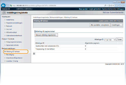 Klik op [Afdeling-ID beheer] en registreer of bewerk Afdelings-ID's.