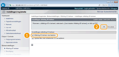 Schakel het selectievakje [Afdeling-ID beheer inschakelen] in en klik op [OK].