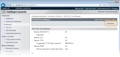 Schakel het selectievakje [Gebruik IEEE 802.1X] in, typ de aanmeldingsnaam in het vak [Loginnaam] en geef de vereiste instellingen op.