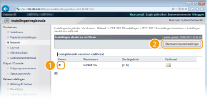 2 | Selecteer een sleutel in de lijst met sleutels en certificaten en klik op [Standaard sleutelinstellingen]. Details weergeven van een sleutelpaar of certificaat |