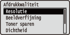 Geef deze instelling op als u het afwerken zoals een grote afdruktaak afdrukken, wilt controleren. De afdrukmodus bespaart toner, en daarom kunnen dunne lijnen en gedeeltes met lichtere afdrukdichtheid vager worden.
