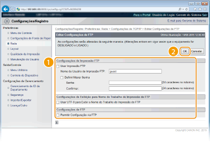 Para efetuar a impressão através do cliente de FTP, selecione a caixa de verificação. Caso, desmarque a caixa.