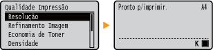 Pode especificar uma variedade de definições relativas à visualização, como o ajuste do ecrã e o idioma, utilizando <Menu de Controle> no menu de programação no painel de controlo. Menu de Controle