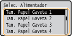 Use / para selecionar um de <Tam. Papel Gaveta 1> para <Tam. Papel Gaveta 4>, e prima .