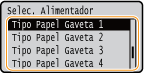 Selecione uma de <Tipo Papel Gaveta 1> para <Tipo Papel Gaveta 4>, e prima .