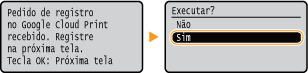Também pode registar a máquina a partir de um dispositivo móvel ou do Google Chrome. O visor da máquina mostra o seguinte ecrã de confirmação antes de concluir o registo. Efetue   <Sim>   para completar o registo.