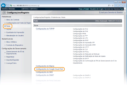 [Configurações do Google Cloud Print].
