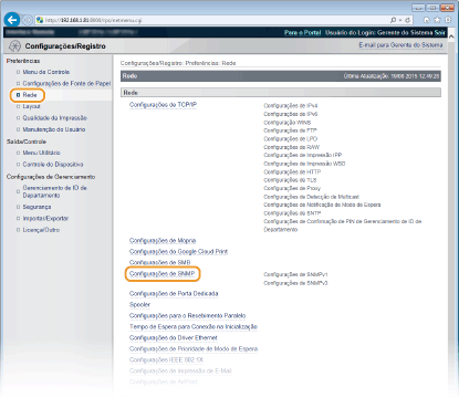 Se o SNMPv1 estiver desativado, algumas funções da máquina ficam indisponíveis (por exemplo, a obtenção de informações da máquina através do controlador de impressora).