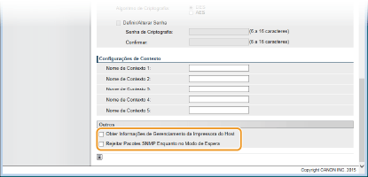 Se selecionar a caixa, as aplicações que usam o protocolo SNMP, como o Canon software imageWARE Series, podem ser impedidas de aceder à máquina.