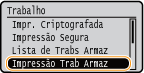 Use / para selecionar <Impressão Trab Armaz> e prima .