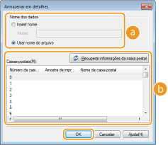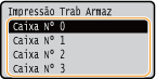 Um local usado para guardar dados de impressão no cartão SD é apelidado de caixa. Selecione o número da caixa onde guardar o documento. Pode atribuir um nome à caixa para facilitar a identificação da caixa. Definir um nome ou PIN para uma caixa