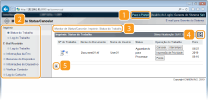 Apresenta a página [Monitor de Status/Cancelar]. Pode usar esta página para verificar o estado de impressão, cancelar a impressão e ver o histórico dos trabalhos de impressão.