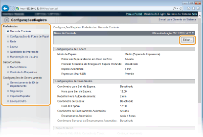 Pode alterar as mensagens apresentadas e a ligação para a página de assistência que são apresentadas na Página do portal (página principal).
