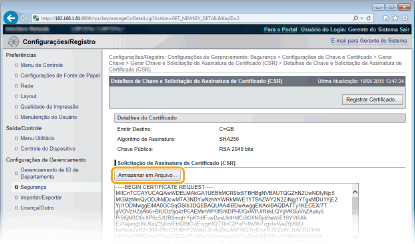 [Configurações de Solicitação de Assinatura de Certificado (CSR)]