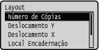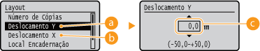 Pode selecionar <Ajust. Posição Impr.> em <Manutenção Usuário> para especificar detalhadamente a posição de impressão de cada origens do papel. O intervalo de valores de desvio disponíveis é de -5,0 mm a +5,0 mm. Ajustar a posição de impressão