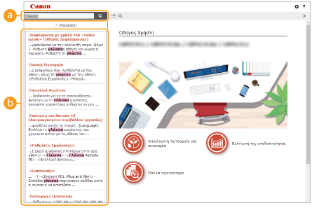 Κάντε κλικ για να εμφανιστούν πληροφορίες σχετικά με το πώς μπορείτε να προβάλλετε το εγχειρίδιο Οδηγός Χρήστη, να πραγματοποιείτε αναζήτηση και άλλες πληροφορίες.