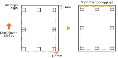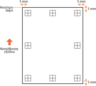 . Προσδιορίστε την κατεύθυνση και την απόσταση που πρέπει να προσαρμοστούν, με βάση αυτά τα σημάδια. Όταν η θέση εκτύπωσης είναι κανονική, όλα τα σημάδια εκτυπώνονται σε θέση 5 mm από το πλησιέστερο άκρο του χαρτιού.