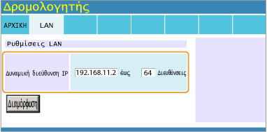 Η διεύθυνση IP μπορεί να προσδιοριστεί από τις ρυθμίσεις δρομολογητή του δικτύου. Προσδιορισμός της διεύθυνσης IP που θα εκχωρηθεί στη συσκευή
