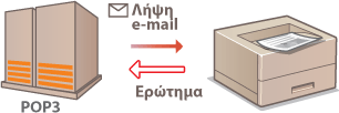 Η εκτύπωση e-mail σάς επιτρέπει να εκτυπώσετε το μήνυμα και τα συνημμένα αρχεία εικόνας ενός e-mail που λαμβάνονται από το διακομιστή αλληλογραφίας POP3, χωρίς να χρησιμοποιήσετε υπολογιστή. Μπορείτε να λαμβάνετε e-mail με μη αυτόματο τρόπο, καθώς και αυτόματα σε τακτά διαστήματα. Όταν χρησιμοποιείται το πρωτόκολλο SMTP, τα e-mail που αποστέλλονται απευθείας στη συσκευή χωρίς να μεσολαβεί διακομιστής αλληλογραφίας, εκτυπώνονται.
