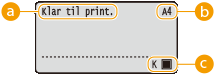 ![]() | Displayet viser udskrivningsstatus og skærmene til angivelse af indstillinger. Det viser også fejlmeddelelser og status for tonerpatronen. |