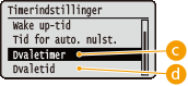 Straks efter at maskinen er blevet tændt, er længden på den tid der går, indtil maskinen går i dvaletilstand, måske længere end specificeret i menuen. |