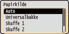 Brug den papirkilde, du ønsker at kontrollere udskrivningspositionen for, og tryk på