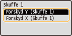 Du kan bruge <Forskyd Y> og <Forskyd X> i indstillingsmenuen på kontrolpanelet for at justere udskrivningspositionerne for alle udskrivningstyper uanset papirkilden. Du kan justere udskrivningspositionen i området -50,0 mm til +50,0 mm i intervaller af 0,5 mm i begge retninger, både lodret og vandret. Forskyd Y/Forskyd X |