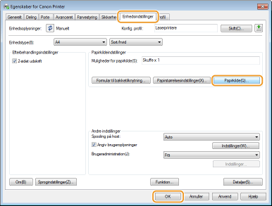 Hvis den valgfri papirindfører er sat på maskinen, skal du udføre den følgende betjening af printerdriveren.