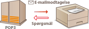 Med funktionen Udskrivning Af E-mail kan du udskrive meddelelser og vedhæftede billedfiler, der modtages fra en POP3-mailserver, uden at skulle bruge en computer. Man kan modtage e-mails manuelt eller automatisk ved regelmæssige intervaller. Hvis der anvendes SMTP-protokol, udskrives e-mails, der er sendt direkte til maskinen uden mailserver.