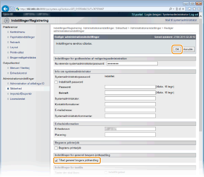 Marker afkrydsningsfeltet [Tillad generel brugers jobhandling], og klik på [OK].