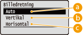 Hvis den angivne indstilling (<Vertikal> eller <Horisontal>) ikke passer overens med billedets retning, udskrives billedet med reduceret størrelse. |