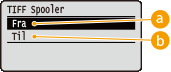 Vælg, om der skal gemmes TIFF-data på SD-kortet, før det behandles til udskrivning. Indstil dette punkt til <Til>, hvis der opstår en fejl under udskrivningen.