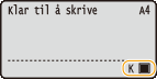 Du kan kontrollere tonerkassettstatusen på hovedskjermen. Det anbefales at du kontrollerer nivået før du skal skrive ut en stor jobb.