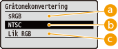 Fargedata konverteres til svart og hvitt-data for å generere et utseende tilsvarende TV-bilder (NTSC).