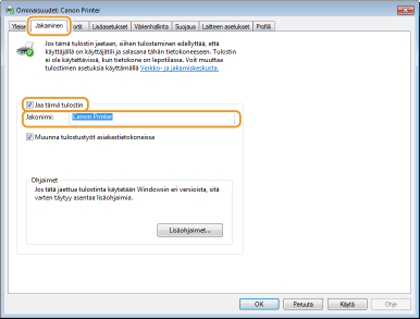5 | Napsauta [OK]. Lisäajurien asennus käynnistyy. Odota, kunnes [Jakaminen]-välilehti tulee uudelleen esiin. ![]() Kun [Käyttäjätilien valvonta] tulee esiin Napsauta [Kyllä]. |