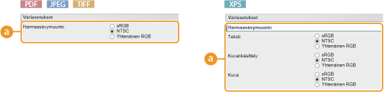 [NTSC] | Väritiedot muunnetaan mustavalkoisiksi tiedoiksi television kuvaa (NTSC) vastaavan ulkoasun luomiseksi. |