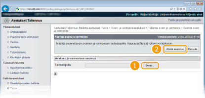 Valitse [Avain- ja varmenneasetukset] avainparin asentamiseksi tai [CA-varmenteen asetukset] CA-varmenteen asentamiseksi.