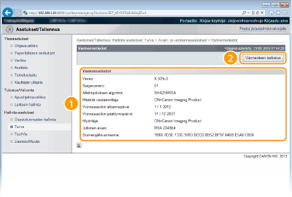 Tarkista varmenteen tiedot ja valitse [Varmenteen tarkistus].