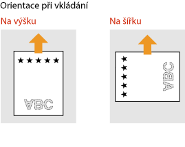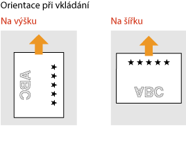Tato část popisuje způsob vložení předtištěného papíru správnou stranou nahoru a ve správné orientaci. Obecný postup vkládání papíru do zásuvky na papír nebo do víceúčelové přihrádky naleznete v následující části.