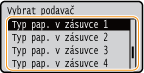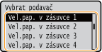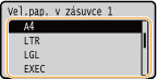 vyberte jednu z možností <Vel.pap. v zásuvce 1> na <Vel.pap. v zásuvce 4>, a stiskněte